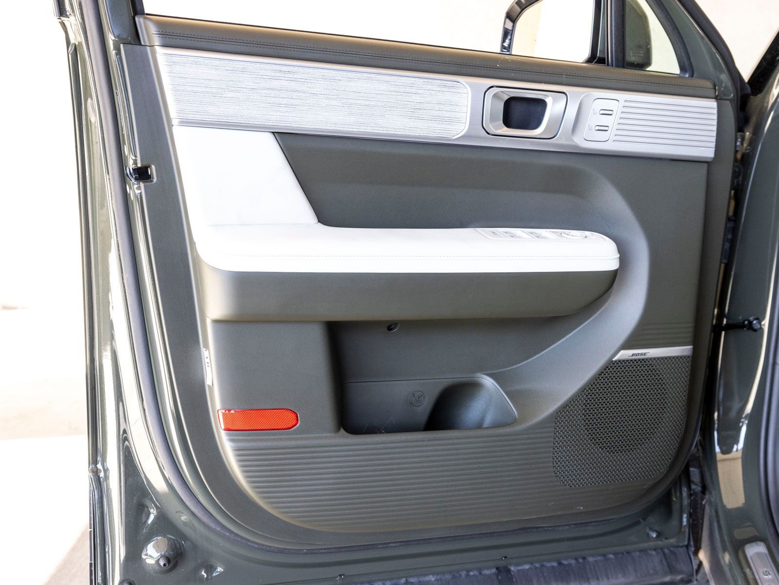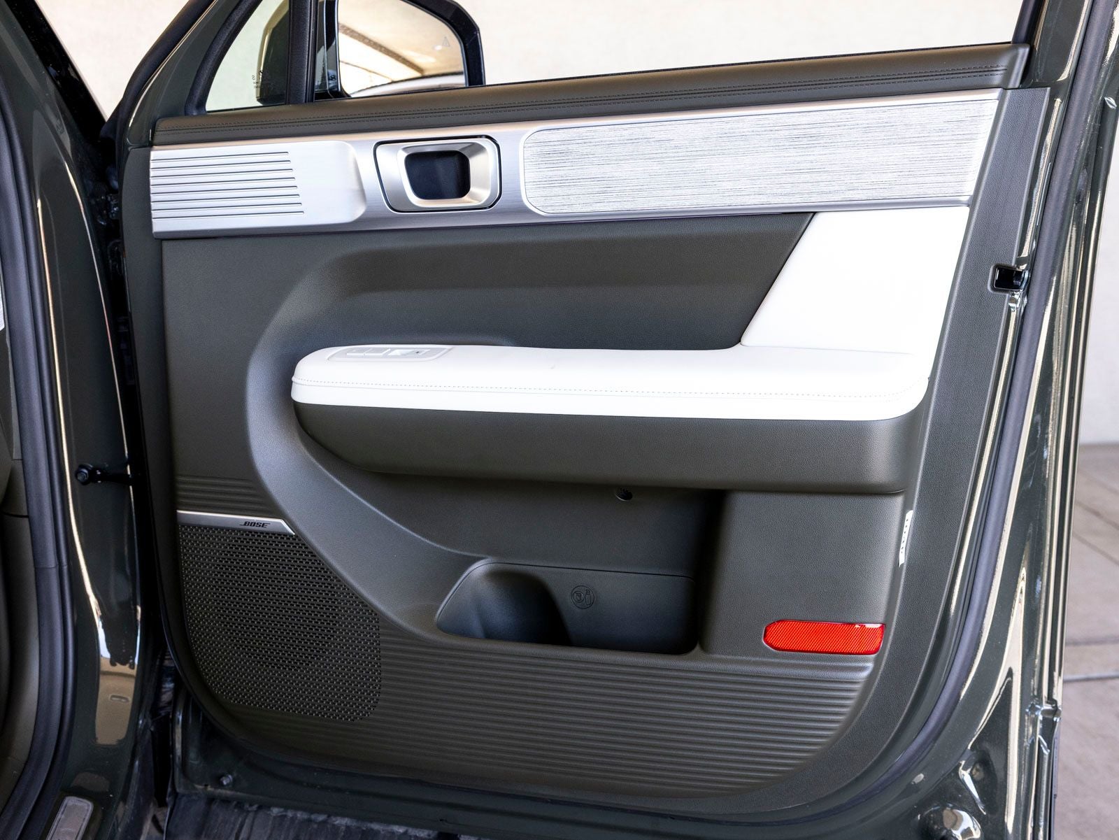 - Radio: AM/FM/HD Bose Premium Audio System -inc: 12 speakers including subwoofer, external amplifier, 12.3" wide touchscreen, Apple CarPlay and Android Auto, Bluetooth® hands-free w/wireless audio streaming, dynamic voice recognition, USB connectivity, SiriusXM, wifi hotspot, Blue Link connected car system, navigation system including traffic flow w/incident data via HD Radio (HERE), OTA updates (map only) and rear seat quiet mode