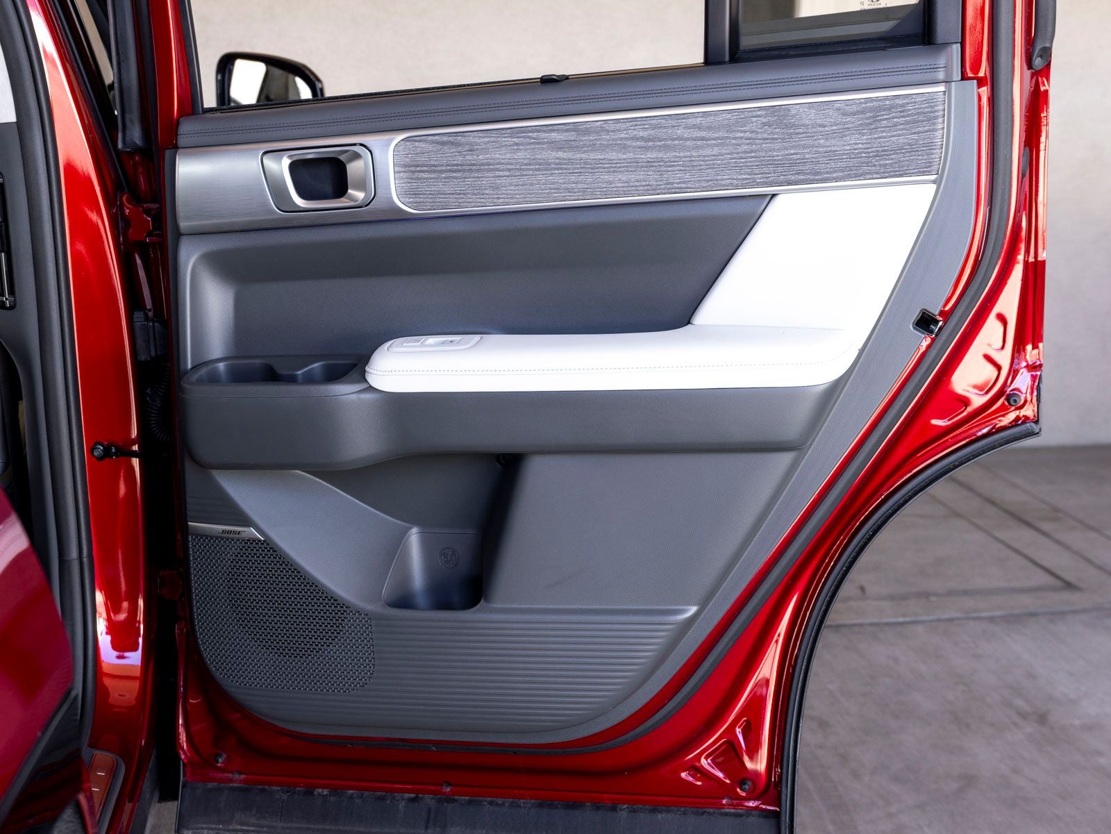 - Radio: AM/FM/HD Bose Premium Audio System -inc: 12 speakers including subwoofer, external amplifier, 12.3" wide touchscreen, Apple CarPlay and Android Auto, Bluetooth® hands-free w/wireless audio streaming, dynamic voice recognition, USB connectivity, SiriusXM, Blue Link+ connected car system, navigation system including traffic flow w/incident data via HD Radio (HERE) and rear seat quiet mode