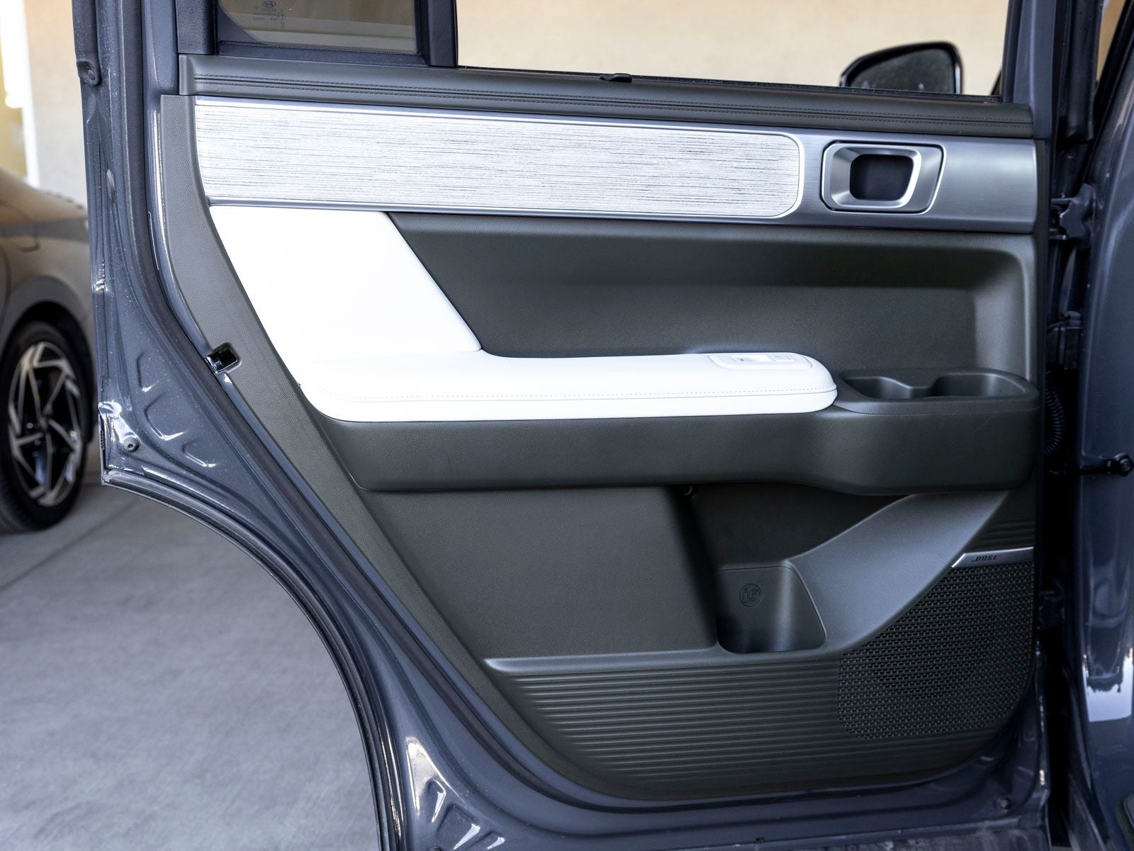 - Radio: AM/FM/HD Bose Premium Audio System -inc: 12 speakers including subwoofer, external amplifier, 12.3" wide touchscreen, Apple CarPlay and Android Auto, Bluetooth® hands-free w/wireless audio streaming, dynamic voice recognition, USB connectivity, SiriusXM, Blue Link+ connected car system, over-the-air updating capability, navigation system including traffic flow w/incident data via HD Radio (HERE) and rear seat quiet mode