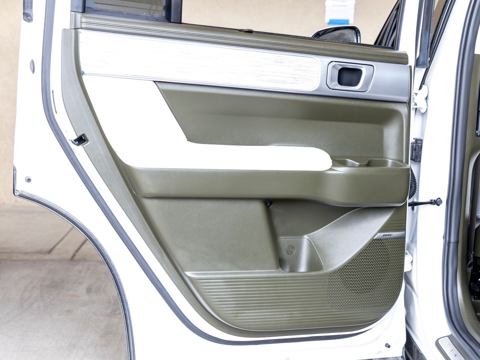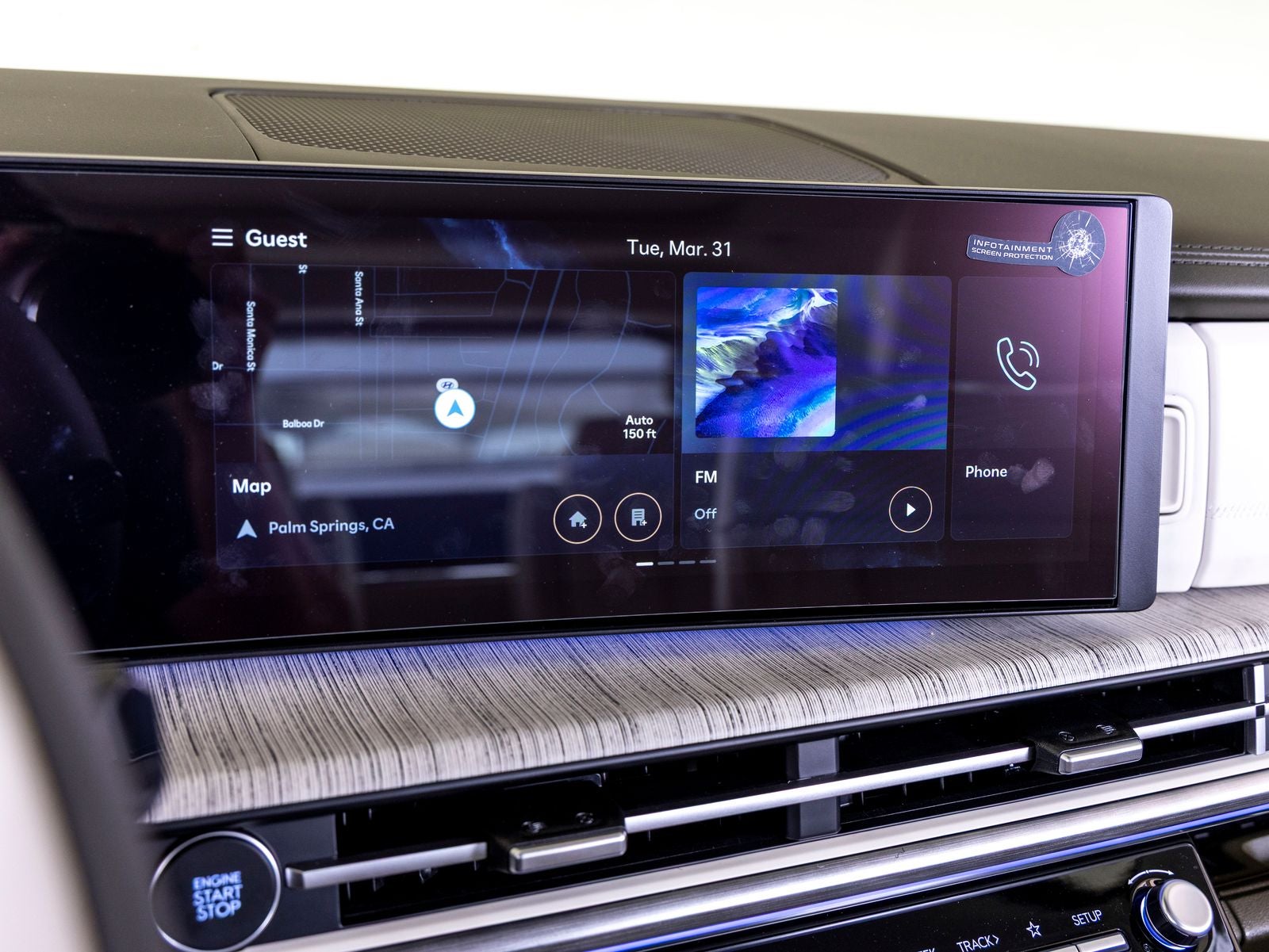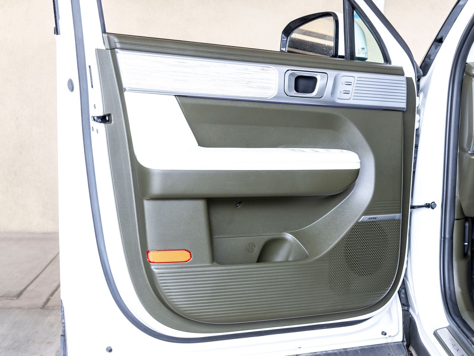 - Radio: AM/FM/HD Bose Premium Audio System -inc: 12 speakers including subwoofer, external amplifier, 12.3" wide touchscreen, Apple CarPlay and Android Auto, Bluetooth® hands-free w/wireless audio streaming, dynamic voice recognition, USB connectivity, SiriusXM, Blue Link+ connected car system, navigation system including traffic flow w/incident data via HD Radio (HERE) and rear seat quiet mode