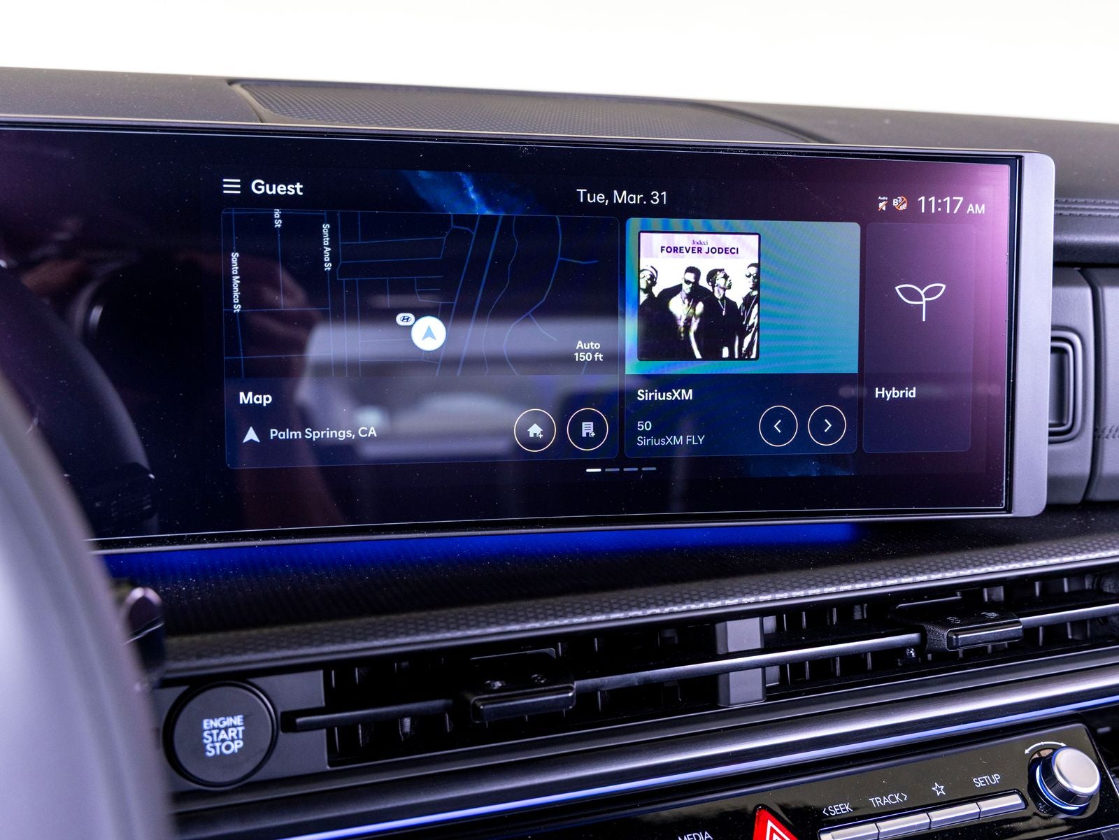 - Radio: AM/FM/HD Bose Premium Audio System -inc: 12 speakers including subwoofer, external amplifier, 12.3" wide touchscreen, wireless Apple CarPlay and Android Auto, Bluetooth® hands-free w/wireless audio streaming, dynamic voice recognition, USB connectivity, SiriusXM, wifi hotspot, Blue Link connected car system, navigation system including traffic flow w/incident data via HD Radio (HERE), OTA updates and rear seat quiet mode