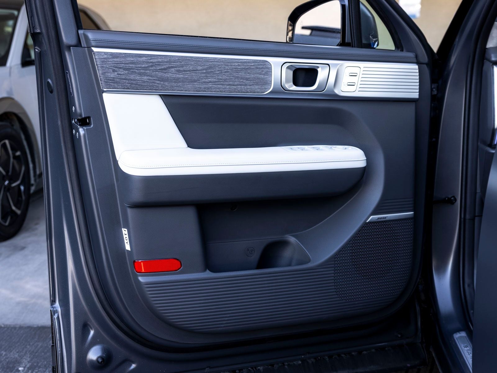- Radio: AM/FM/HD Bose Premium Audio System -inc: 12 speakers including subwoofer, external amplifier, 12.3" wide touchscreen, wireless Apple CarPlay and Android Auto, Bluetooth® hands-free w/wireless audio streaming, dynamic voice recognition, USB connectivity, SiriusXM, wifi hotspot, Blue Link connected car system, navigation system including traffic flow w/incident data via HD Radio (HERE), OTA updates and rear seat quiet mode