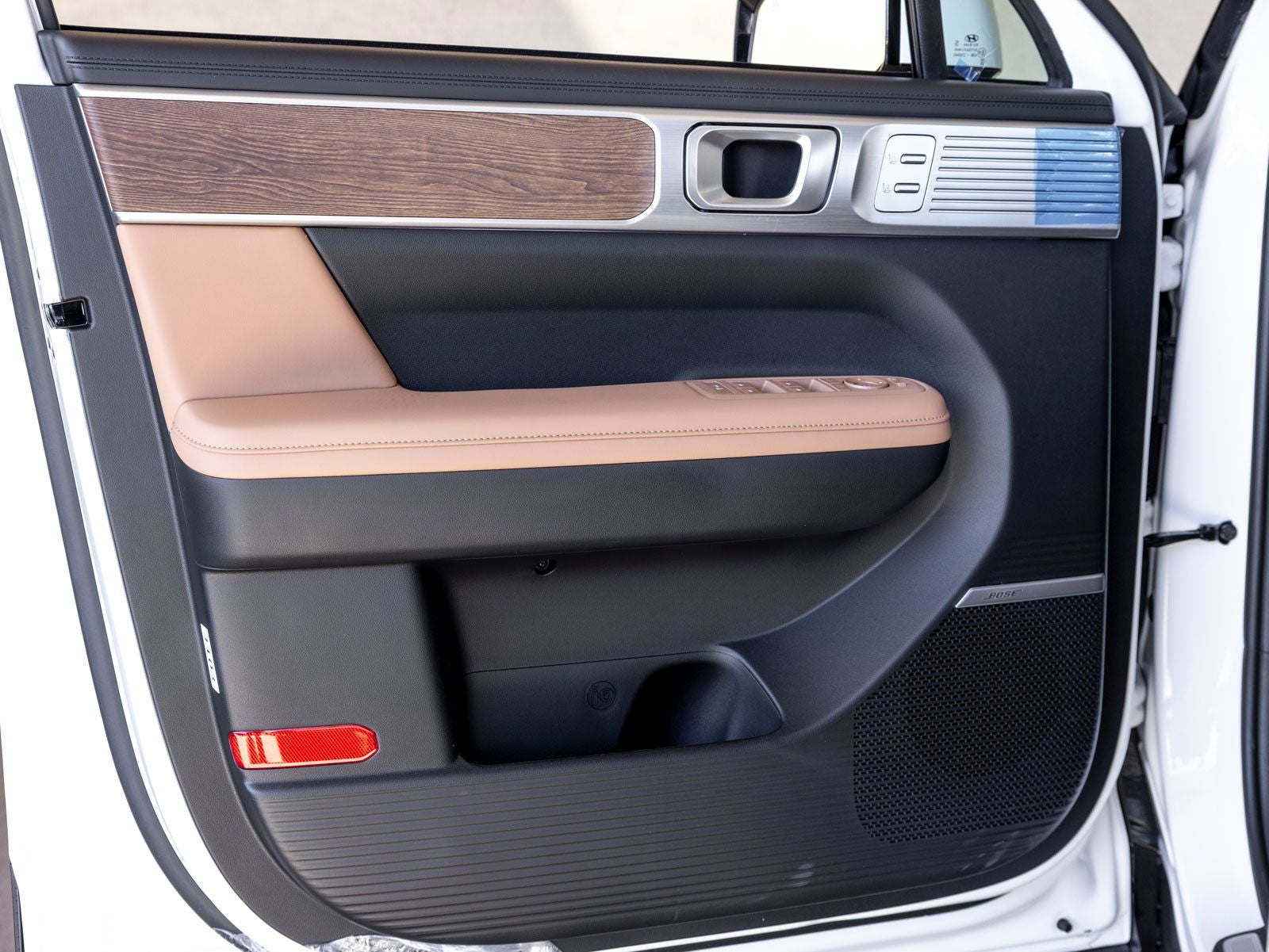 - Radio: AM/FM/HD Bose Premium Audio System -inc: 12 speakers including subwoofer, external amplifier, 12.3" wide touchscreen, wireless Apple CarPlay and Android Auto, Bluetooth® hands-free w/wireless audio streaming, dynamic voice recognition, USB connectivity, SiriusXM, wifi hotspot, Blue Link connected car system, navigation system including traffic flow w/incident data via HD Radio (HERE), OTA updates and rear seat quiet mode