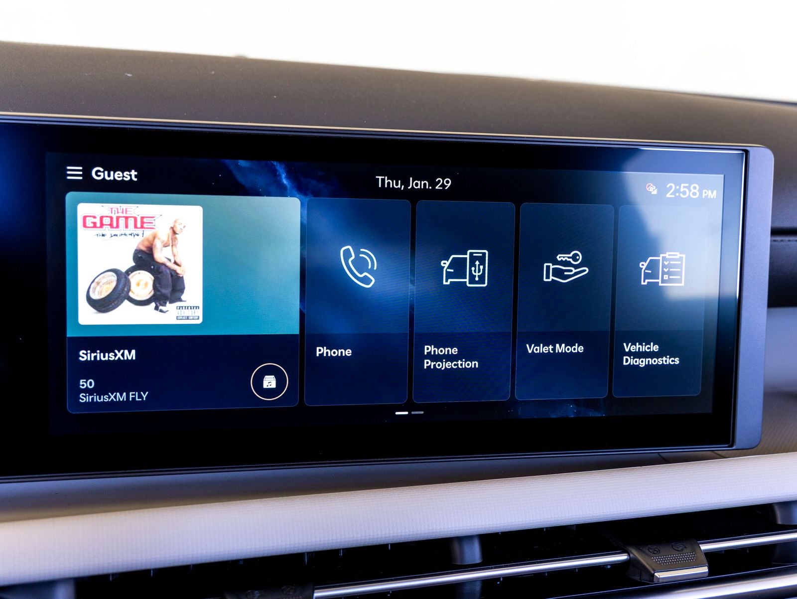 - Radio: AM/FM/HD Audio System -inc: 12.3" color touchscreen display, 6 speakers, SiriusXM satellite radio system (3-month trial subscription), wireless Apple CarPlay and Android Auto integration, controller OTA update capability, Blue Link connected car system and USB connectivity